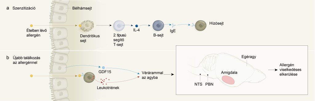 Az új eredmények szerint tehát az étellel a tápcsatornába kerülő allergének hatására a hízósejtek különféle vegyületek termelésébe kezdenek. Ezek a vegyületek arra ösztökélik a tápcsatorna hámsejtjeit, hogy felszabadítsanak egy hormont. A hormon megjelenését agytörzsi sejtcsoportok érzékelik, melyek továbbítják a jelet az amigdalának is. Az amigdala aktivációja révén jön létre az étel által okozott kellemetlenség lenyomata, amely aztán később is elkerülésre sarkallja az állatot.