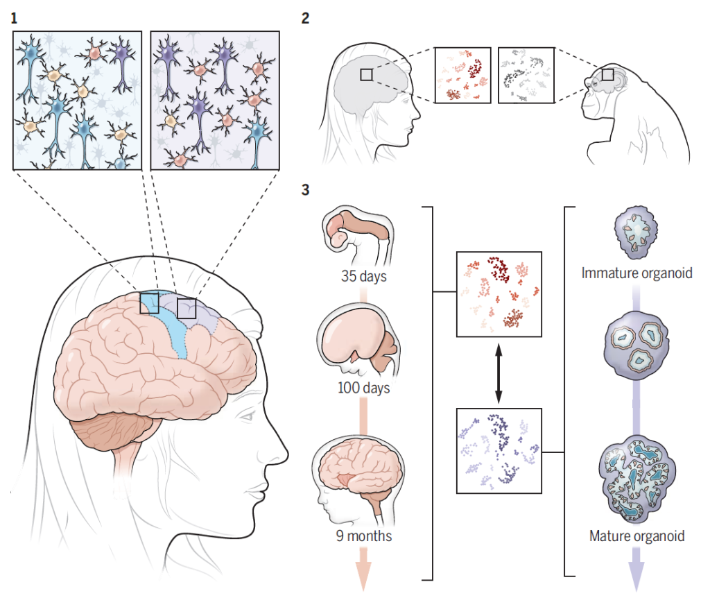 Egy másik kutatás az emberi agy fejlődésére fókuszált az első trimeszterben és páratlan részletességgel tárta fel a transzkriptomikus változásokat. Egy tanulmány kifejezetten a talamuszra fókuszált, amely gyakorlatilag az agykéreg és más agyterületek között menedzseli a kommunikációt, vagyis minden magasabb rendű idegrendszeri folyamatban központi szerepet játszik. Az eredmények rávilágítottak egy humánspecifikus sejttípusra, amellyel eddig keveset foglalkoztak a tudósok, pedig talán szerepük van az emberi agy különleges jellemzőinek létrejöttében. Az utolsó vizsgálat a fogantatástól egészen a felnőttkorig igyekezett megállapítani a neuronok működésében bekövetkező változásokat. Ez volt talán a legnagyobb ívű vizsgálat, amely hatalmas mennyiségű hasznos információval szolgál a tudományos közösségnek, ráadásul még az autizmus spektrum zavar kialakulásának megértésével kapcsolatban is felvetődtek új lehetőségek.
