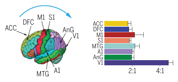 Az egyik vizsgálat legfontosabb eredménye, hogy noha a különféle agyterületek között jelentős átfedés van a sejttípusokban, mégis vannak olyanok, amelyek csak egy-egy területen találhatók meg. Ez az eredmény magyarázhatja, hogy miért képesek bizonyos fertőzések vagy betegségek jól behatárolható területeken problémákat okozni. A másik vizsgálat arra hívja fel a figyelmet, hogy az agykéregben jelentős átfedés van a sejttípusok között és inkább ezek megoszlása az, ami változatos az egyes területeken. Az elsődleges látókéregben viszont kimagasló mennyiségű specifikus sejttípust találtak, ráadásul a serkentő és gátló neuronok aránya is jelentősen eltért más területekhez képest.